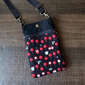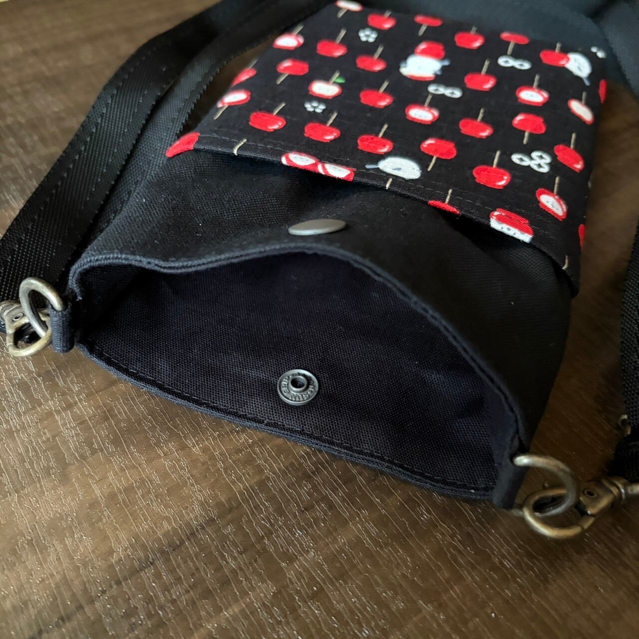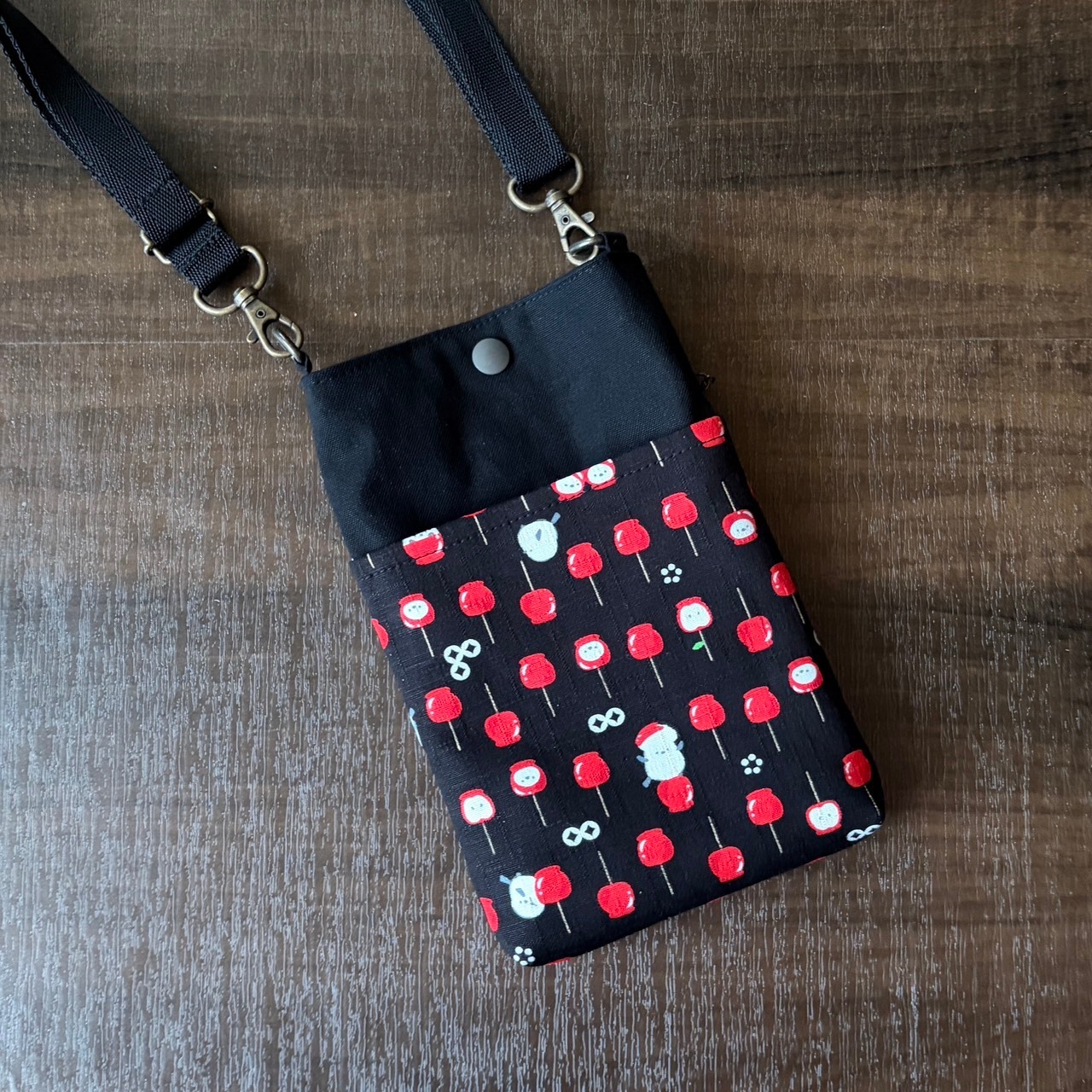シマエナガとりんご飴柄のスマホポシェット⭐︎ブラック